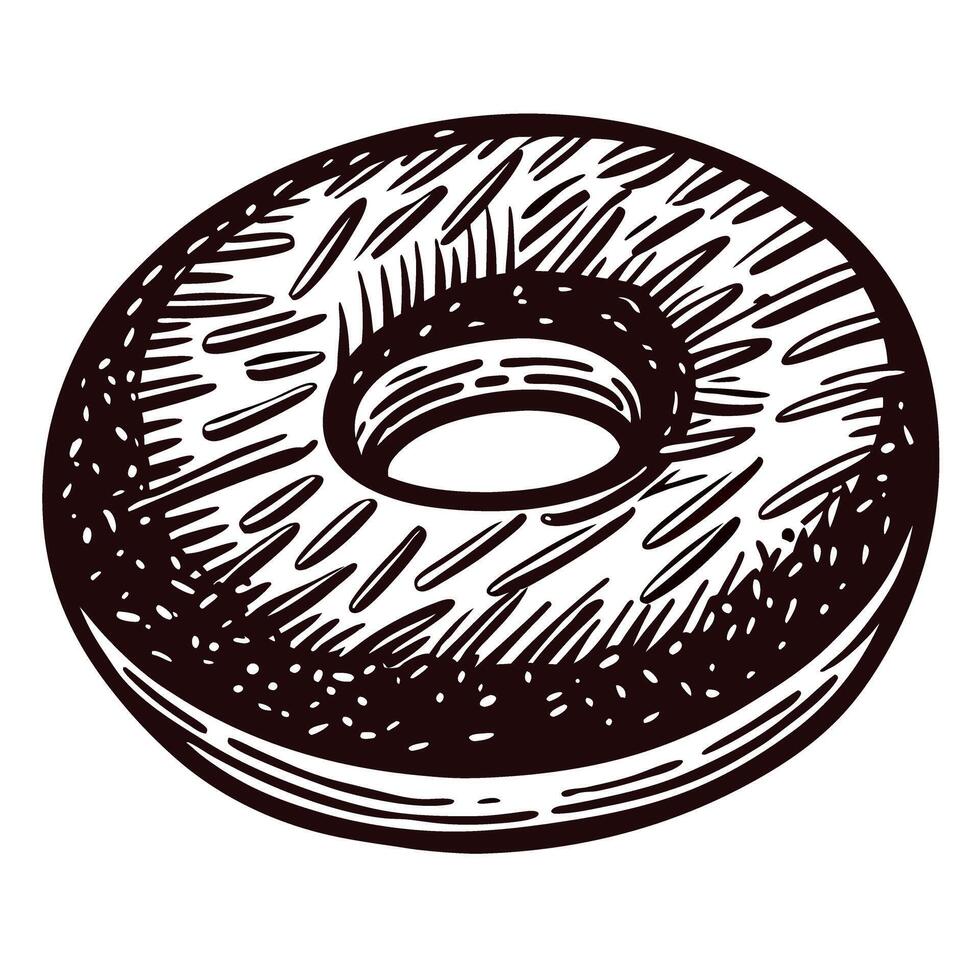 Hand drawn sketch of a classic ring shaped doughnut with detailed texture and shading on white background Pro Vector