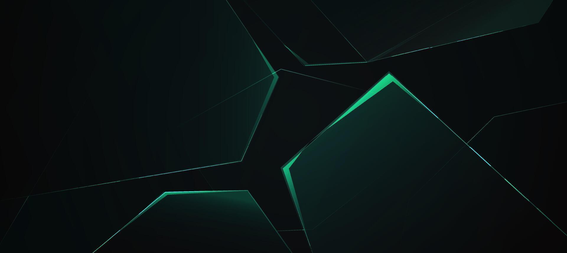 Abstract technology background with glowing green lines and geometric on dark background Pro Vector