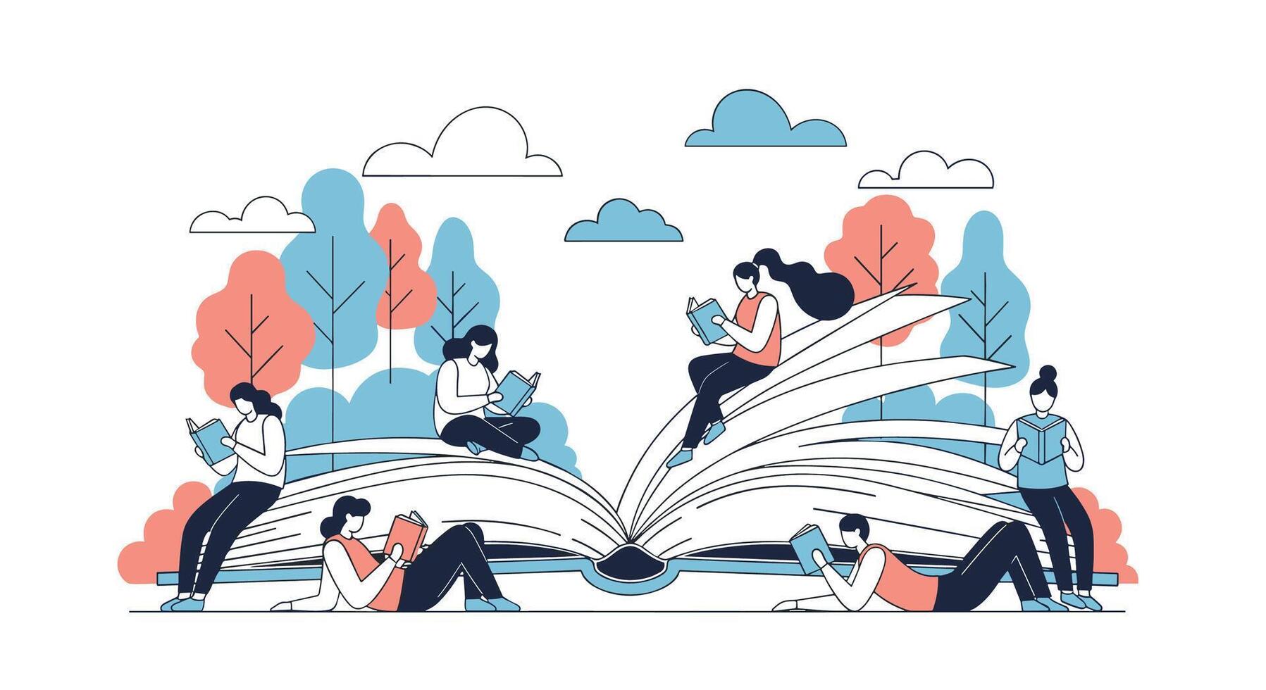 Book Lovers Enjoying Time in Nature While Immersed in Reading Through Knowledge Pro Vector