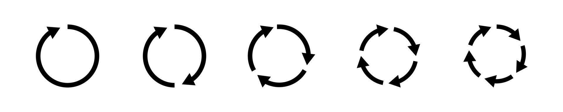 Circular Arrows Icon Set. A black icon of circular arrows, representing a process or reload. Pro Vector