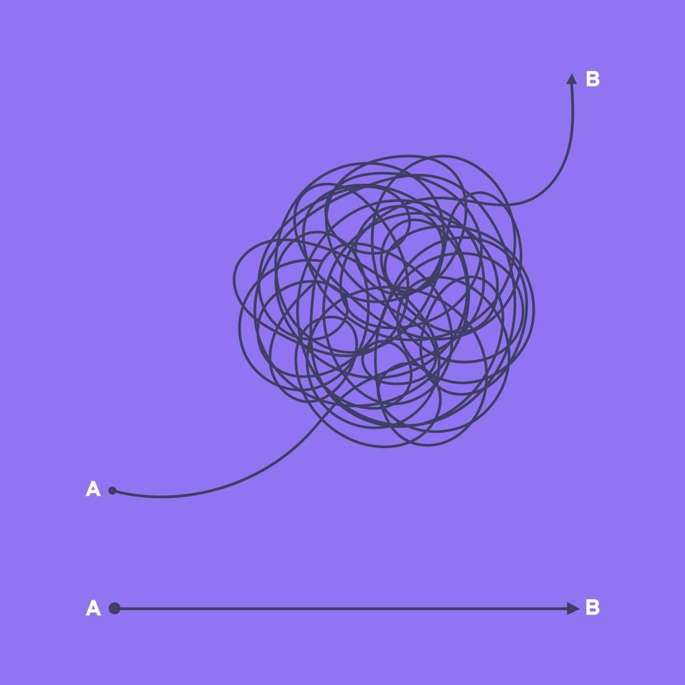 Complex and easy simple way from point A to B vector illustration. Pro Vector