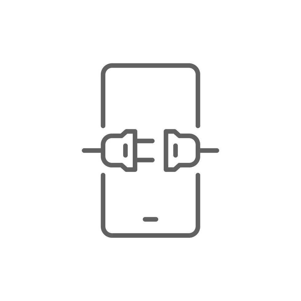 Disconnected Plug Icon Inside Smartphone Outline, Editable Stroke Minimal Style for Digital Detox, Tech Break, Screen Off, Unplug, and Mobile Shutdown Concept Pro Vector