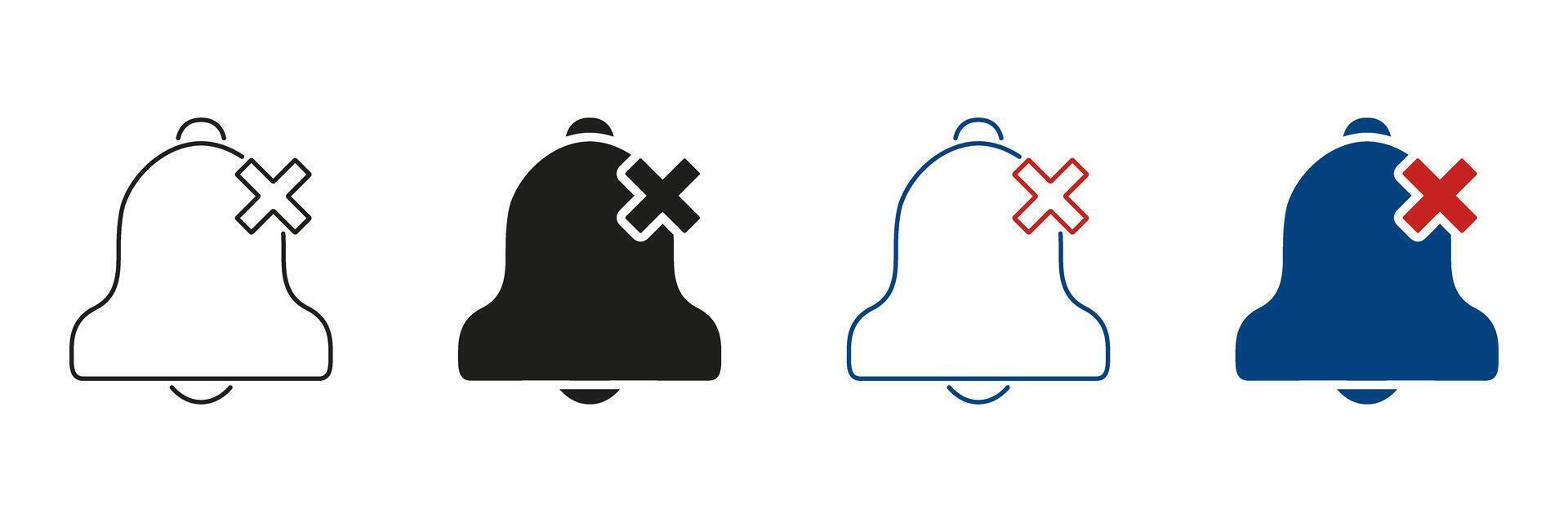 Bell With Cross Line And Solid Icon Set. Notification Muted, Silent Mode, And Alert Off Symbol Collection. Sound Deactivation And Do Not Disturb Feature. Isolated Illustration Pro Vector