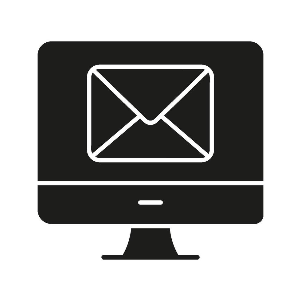 Computer With Email Envelope Solid Icon. Digital Communication, Online Messaging, And Email Notification Silhouette Symbol. Internet Connectivity. Isolated Illustration Pro Vector