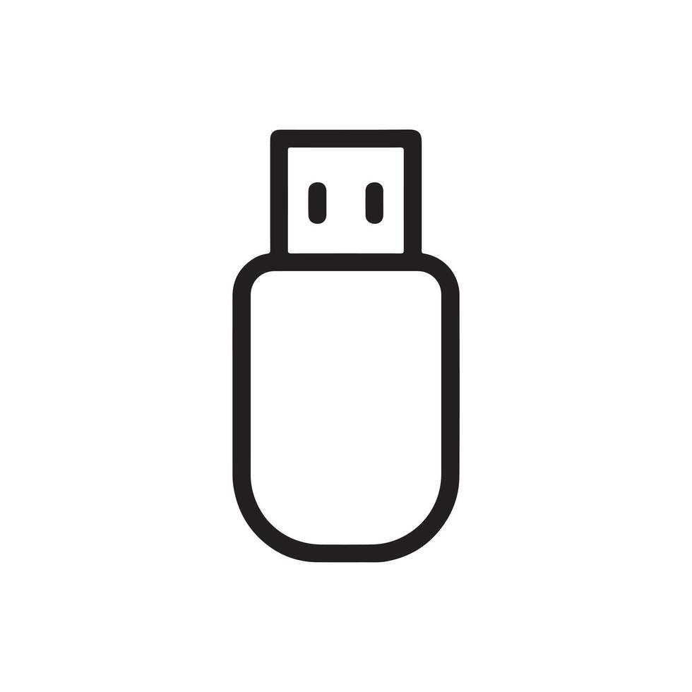 Minimal black and white USB flash drive icon with bold lines ideal for data storage tech interface file transfer electronics and digital device themed design elements Pro Vector
