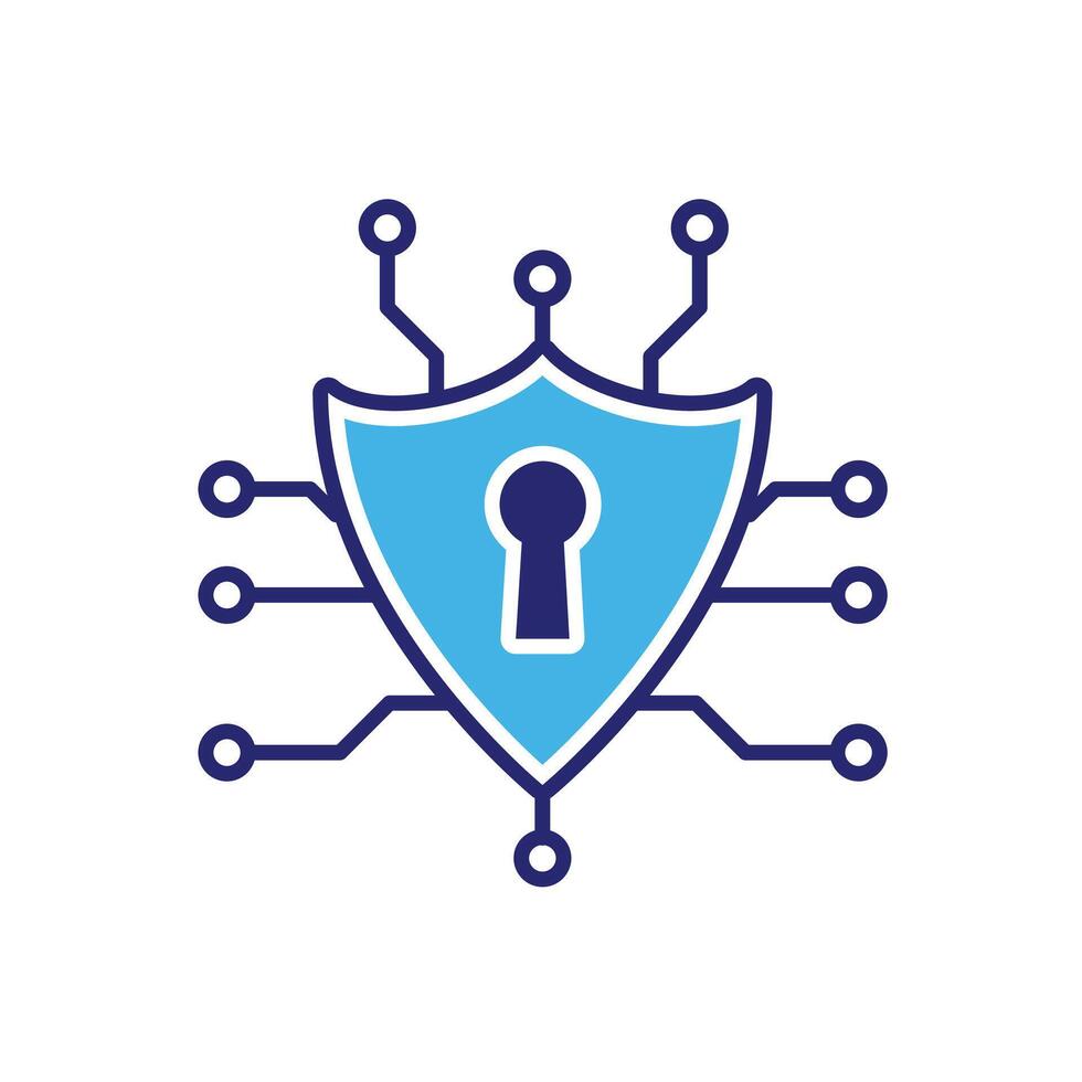 Technology icons. Security systems. Shield with lock and nodes. Depicts automation, future, artificial intelligence. Flat design style Pro Vector