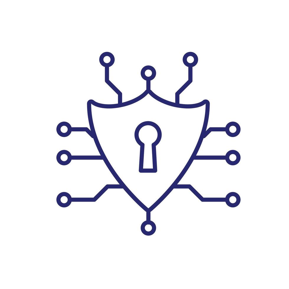 Technology icons. Security systems. Shield with lock and nodes. Depicts automation, future, artificial intelligence. Outline design style. Pro Vector