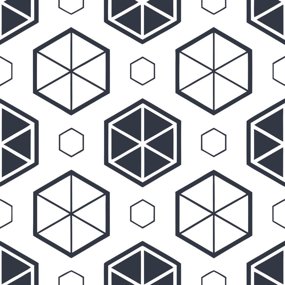 Seamless pattern of hexagons and triangles in a geometric arrangement, with a white background Pro Vector