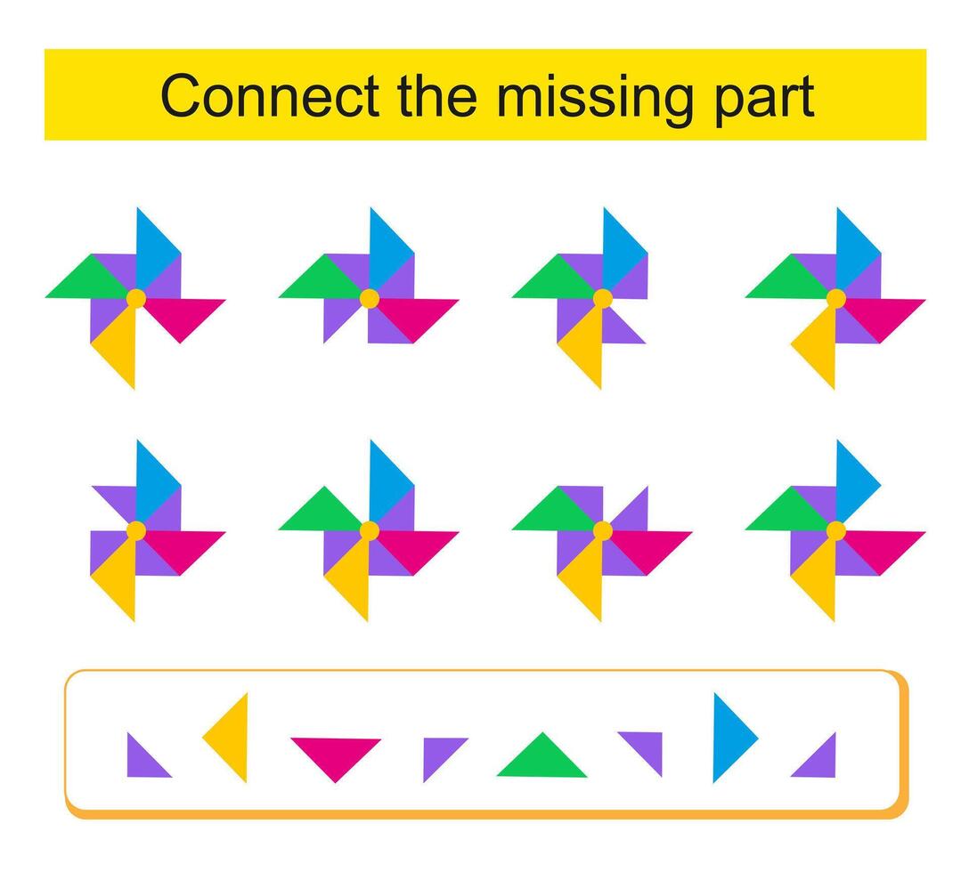 Connect the missing part. Task for the development of attention and logic. illustration of the pinwheel. Free Vector