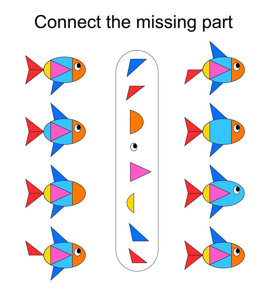 Connect the missing part. Task for the development of attention and logic. illustration of the fish. vector