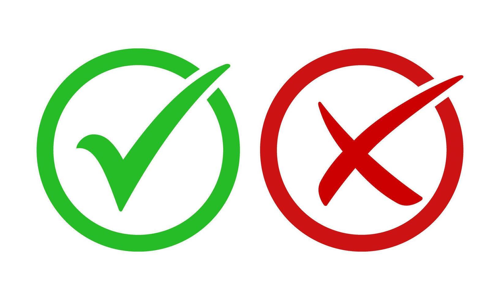Green check mark, red cross, x mark icon set, hand drawn right and wrong rounded sign concept. tick mark symbol and x cross icon in circle outline. Check mark isolated set Pro Vector