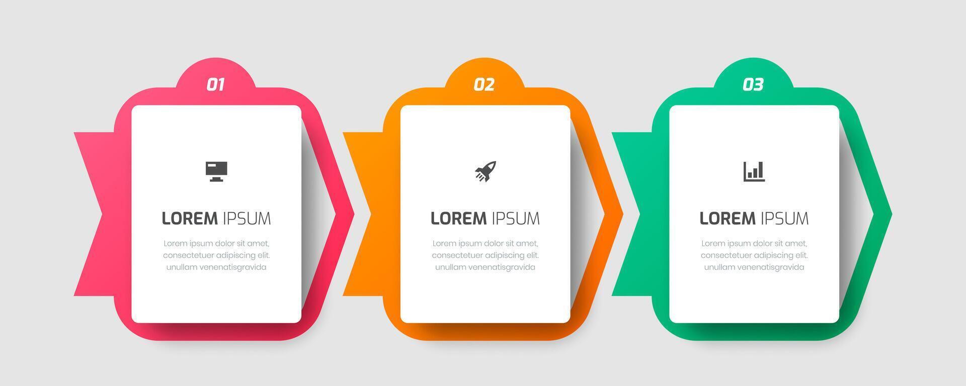 Infographic Label Design Template with Rectangle, Icons and 3 Numbers for Presentation Pro Vector