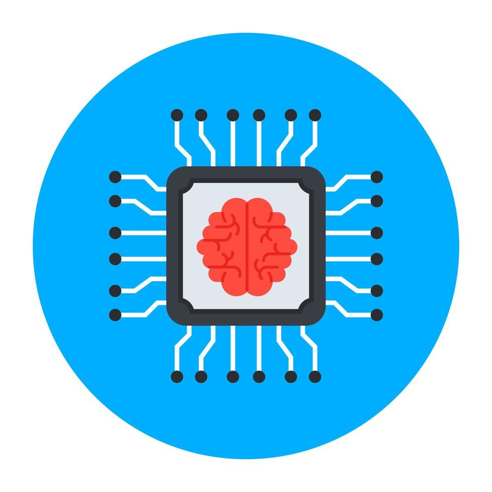 A processor chip brain, concept of brain processor flat vector icon Pro Vector