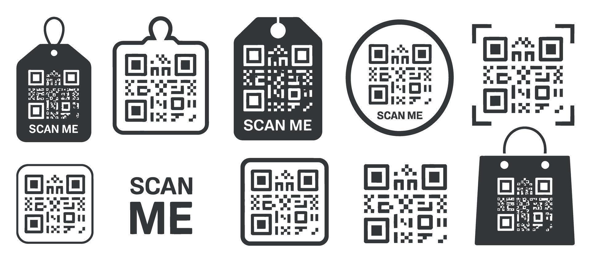 Collection of QR Code Icons with Different Styles and Applications Pro Vector