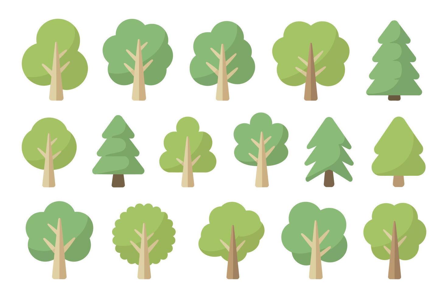 Collection of Flat Design Tree Icons in Various Shapes and Sizes Pro Vector