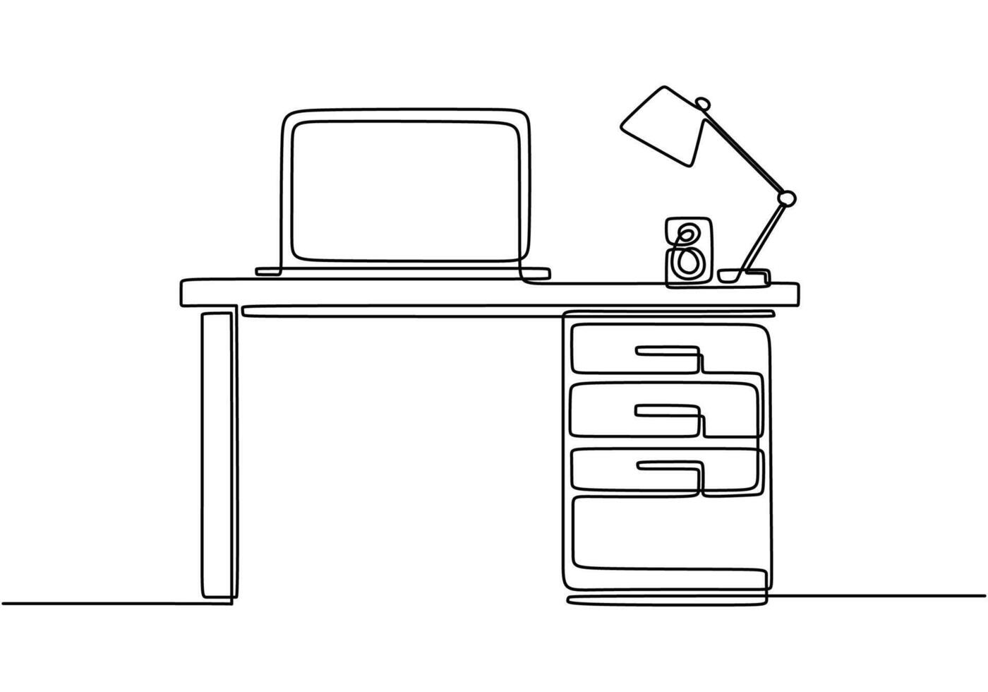 Study desk in continuous line drawing. Education concept for learning environment and workspace. Pro Vector