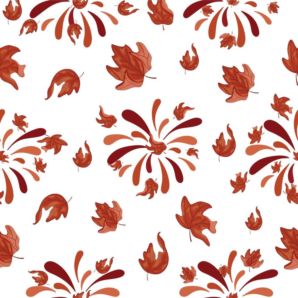 Pattern with fireworks in different shades of orange with different maple leaves and the leaves themselves from under the tree, for Canada Day Pro Vector