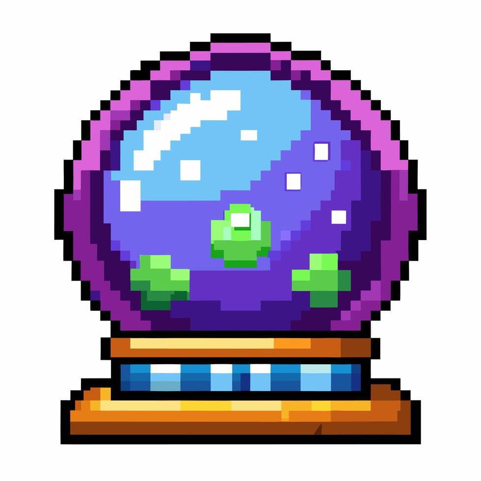 Pixel Art Snow Globe with Floating Green Objects and Purple Background Free Vector