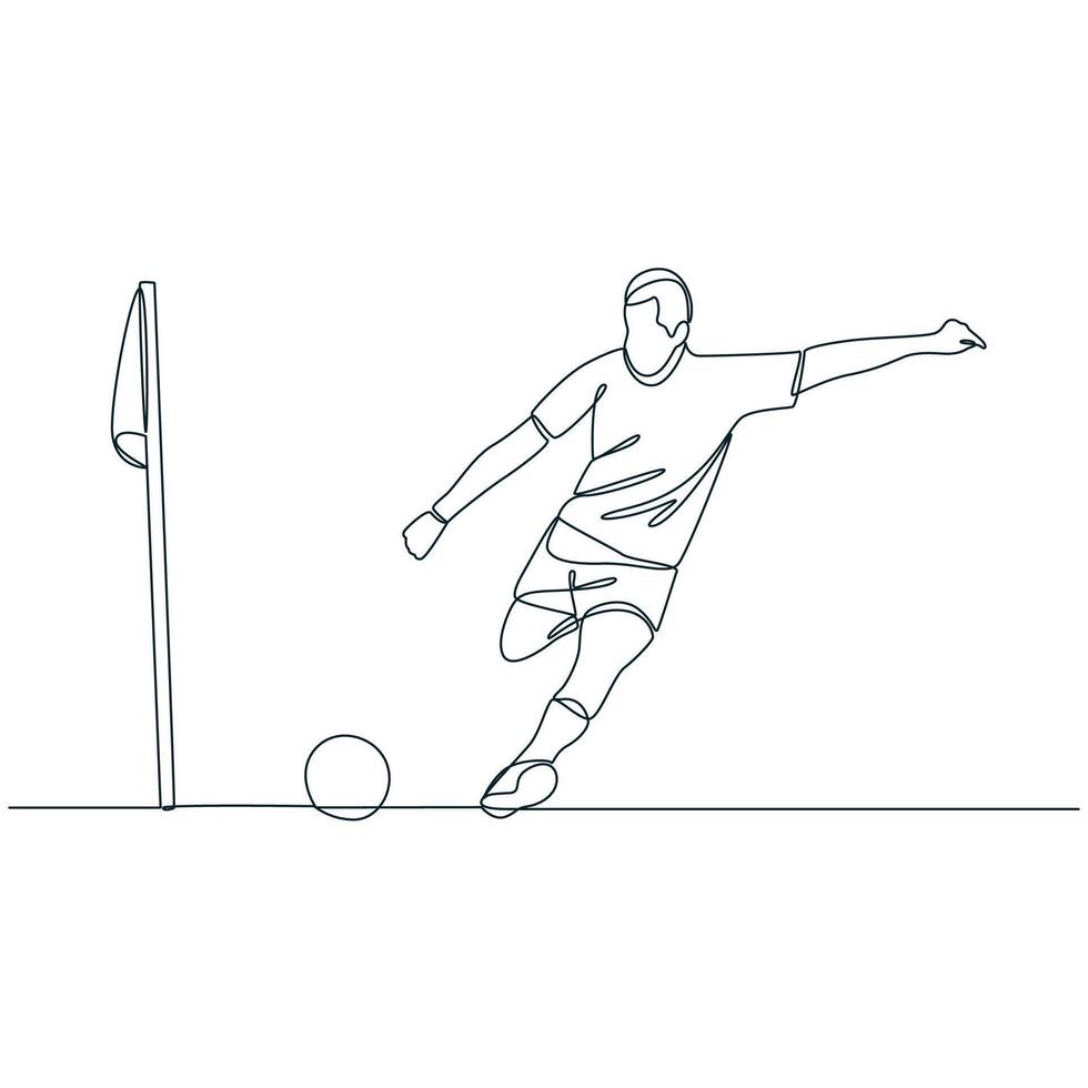 Continuous Line Art of Soccer Player Executing a Corner Kick Pro Vector