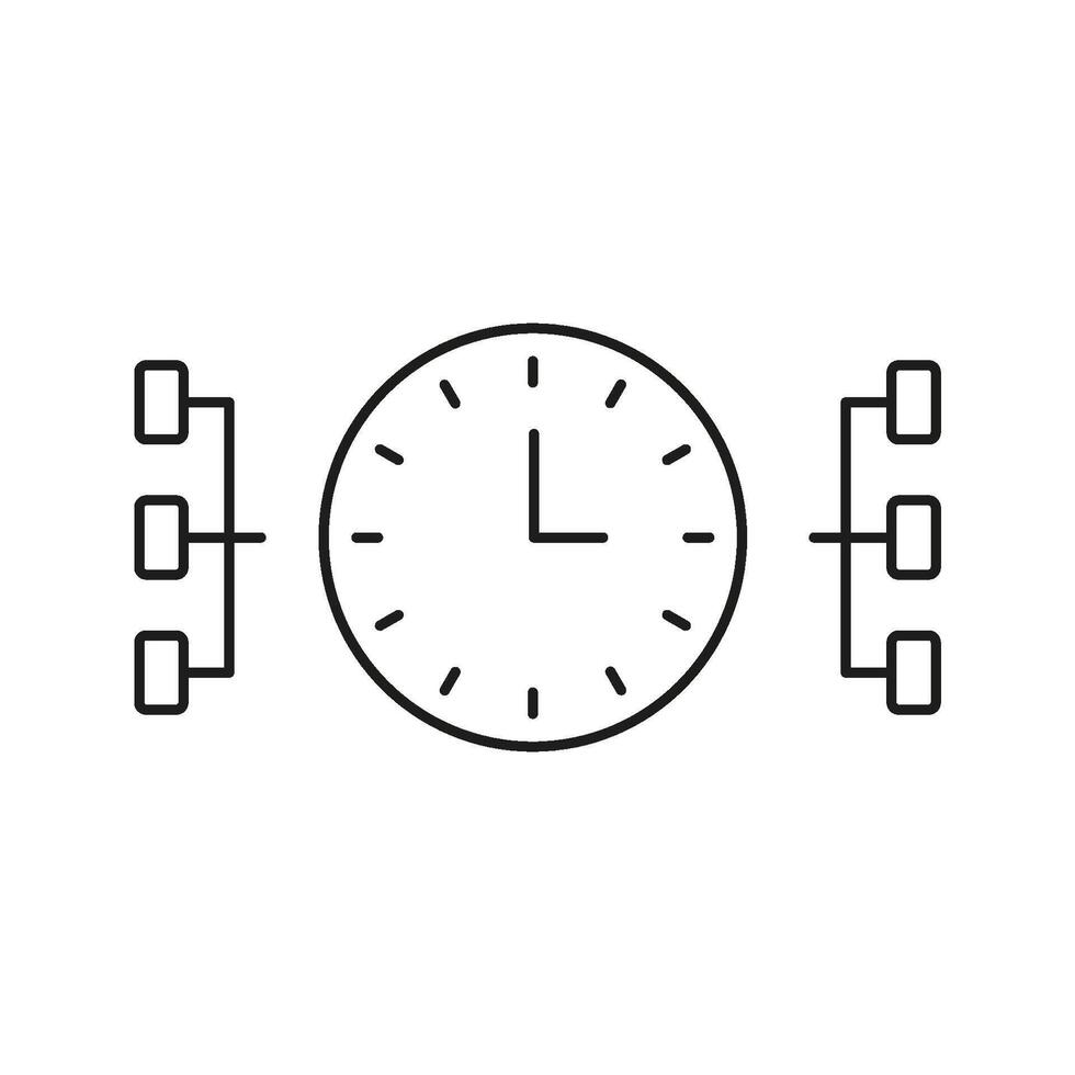 Clock With Network Nodes Line Icon. Time Synchronization And Data Flow Management Outline Symbol. Efficient Network Communication. Editable Stroke. Isolated Illustration Pro Vector