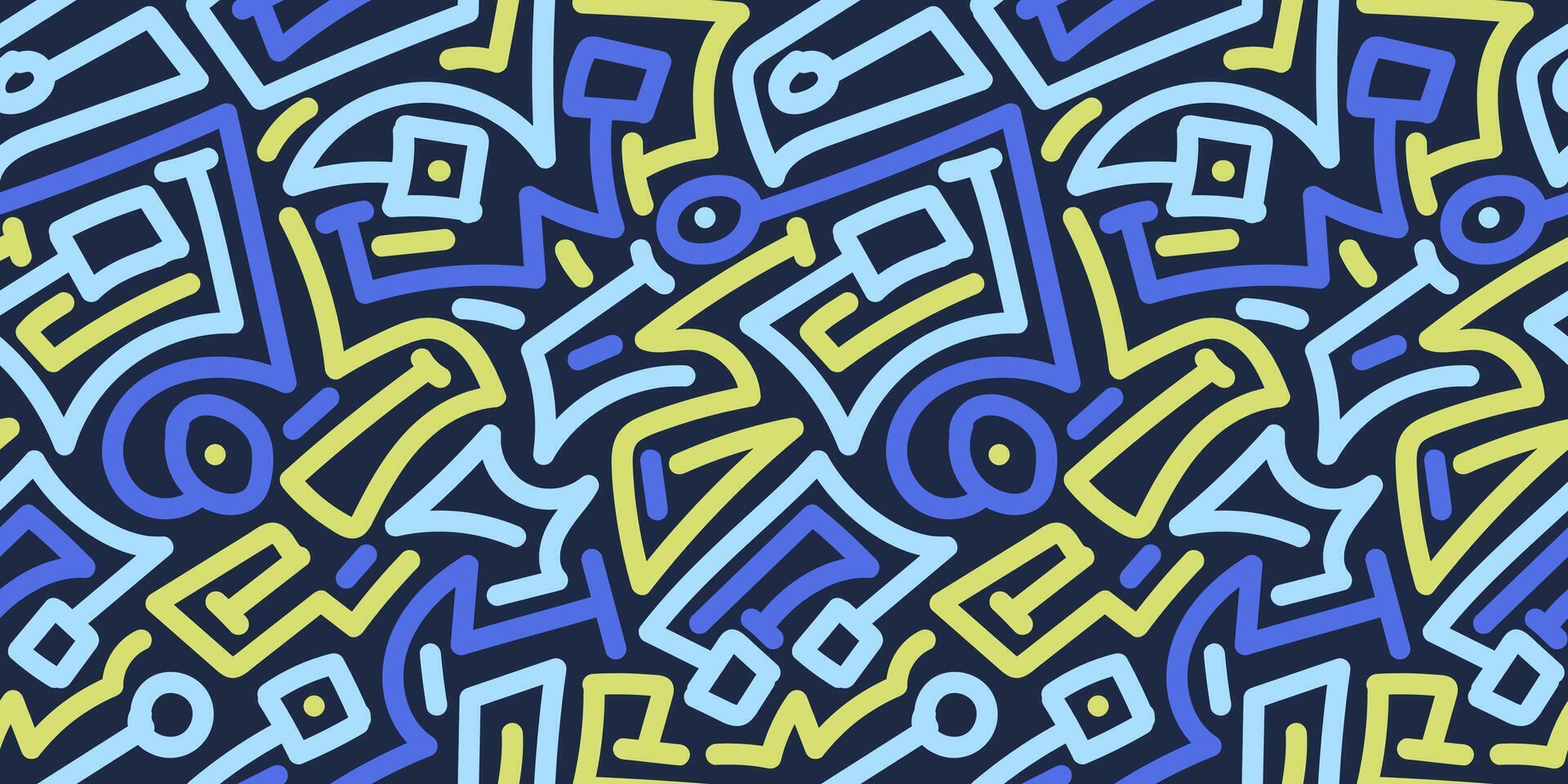 A blue and yellow abstract pattern with many different shapes Pro Vector