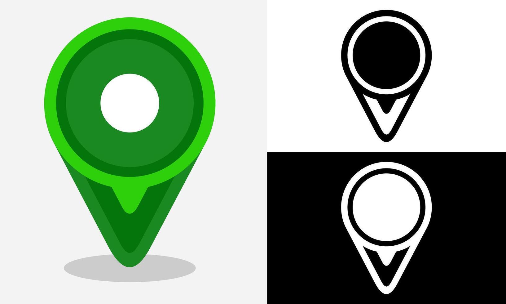 Green Map Location Pin Icons in Three Modern Style Variants Pro Vector
