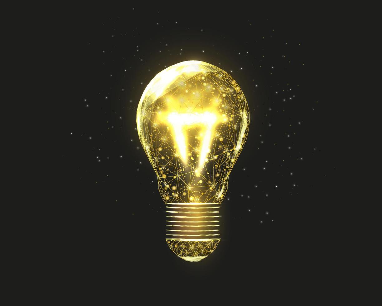 Gold wireframe lightbulb. Internet technology network, business idea concept with glowing low poly bulb. Vector illustration. Pro Vector