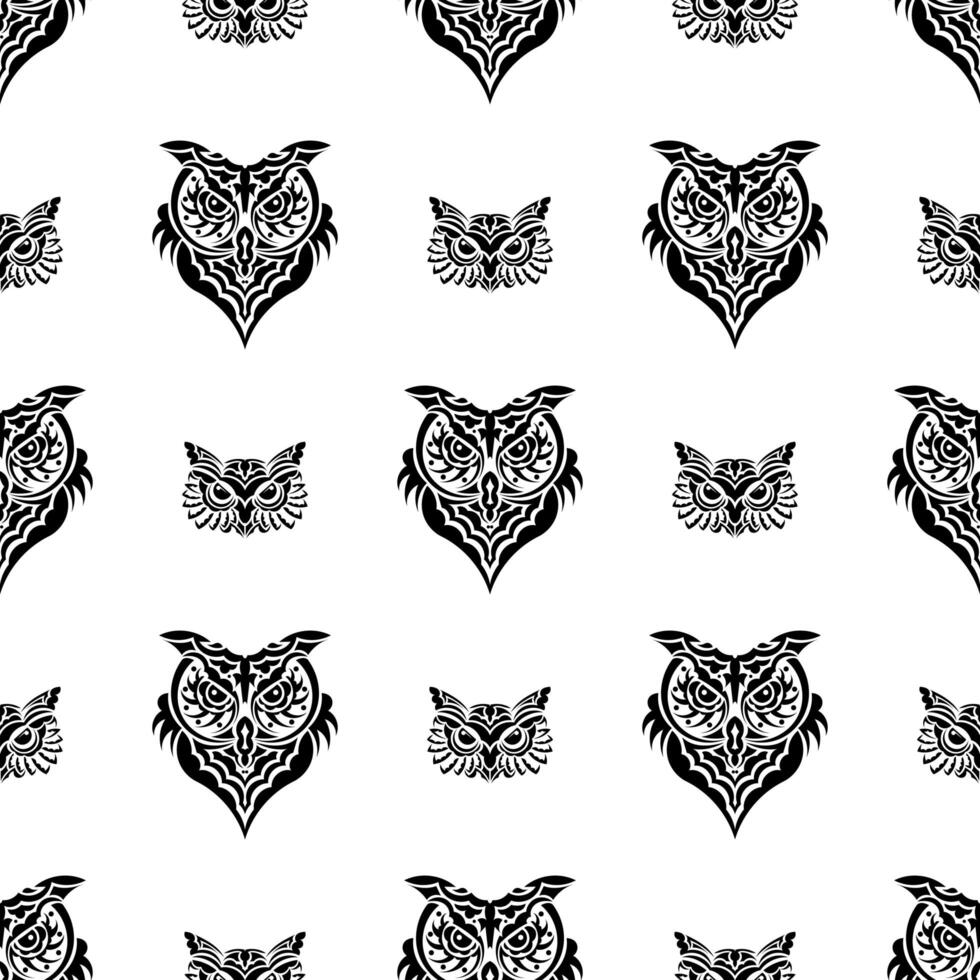 Seamless pattern with owl face. Polynesia and Samoa patterns. Suitable for poster, postcard, banner, textile and menu design. Vector Pro Vector