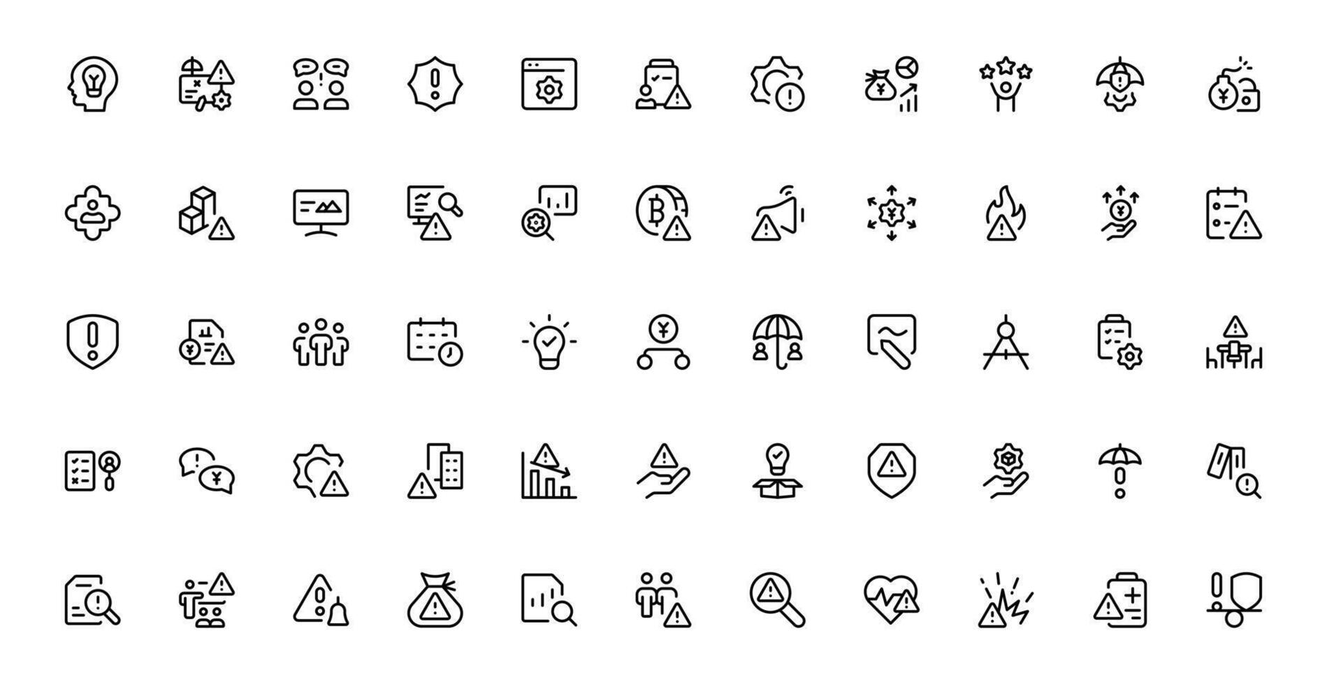 Professional Risk Management Icon Design Set Collection Covering Danger, Planning, Assessment, Caution, and Prevention Concepts with a Minimal Clean Design Pro Vector