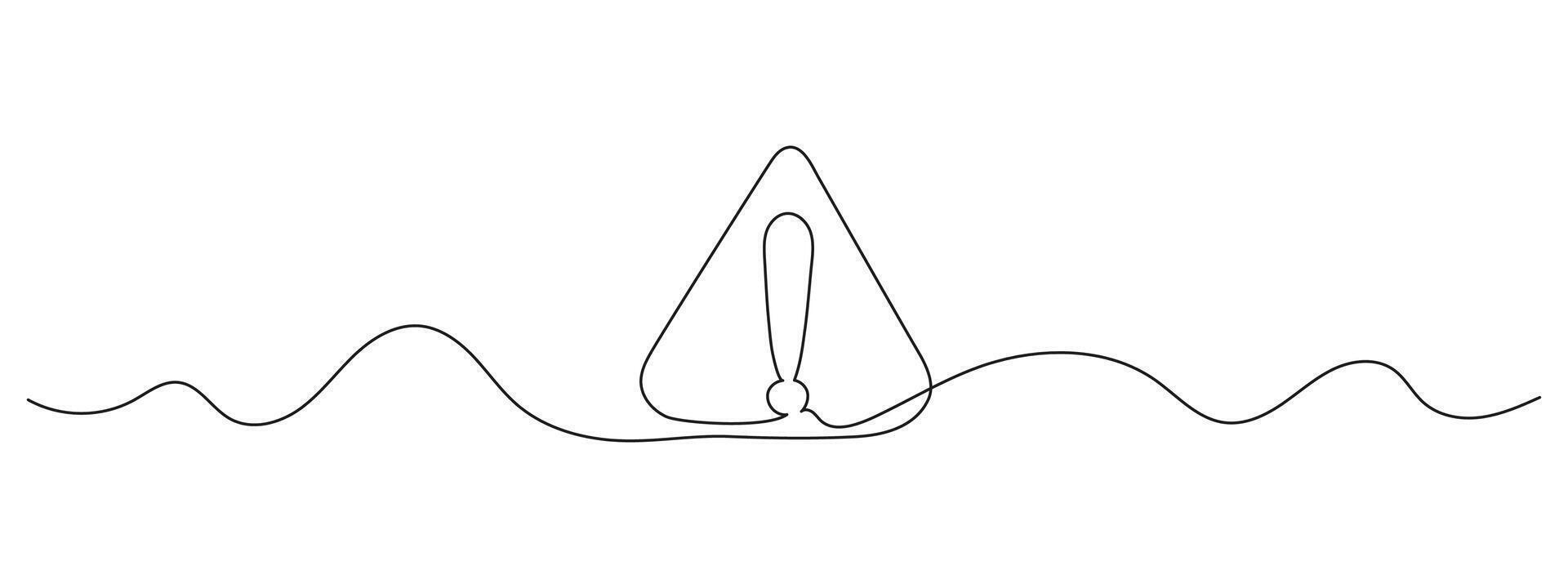 Continuous one line drawing of a danger sign icon. Exclamation mark inside a triangle. Minimalist outline symbol for warning, caution, or hazard concepts. Pro Vector