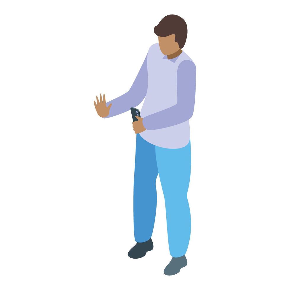 Man using augmented reality, holding smartphone and gesturing with hand Pro Vector