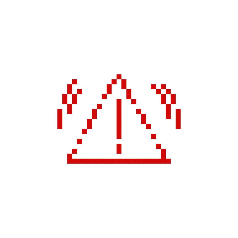 Mosaic pixel art triangle alert icon with exclamation in retro 8 bit style Pro Vector