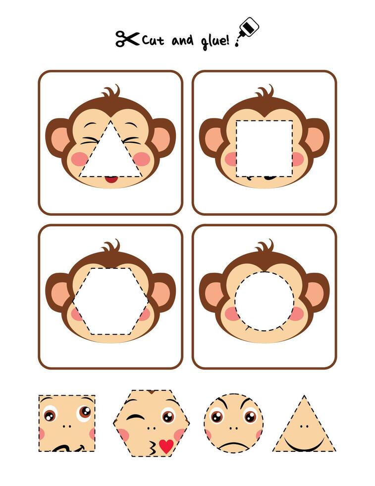 Funny Monkey Shapes Page Cut, Match and Learn Activity Pro Vector