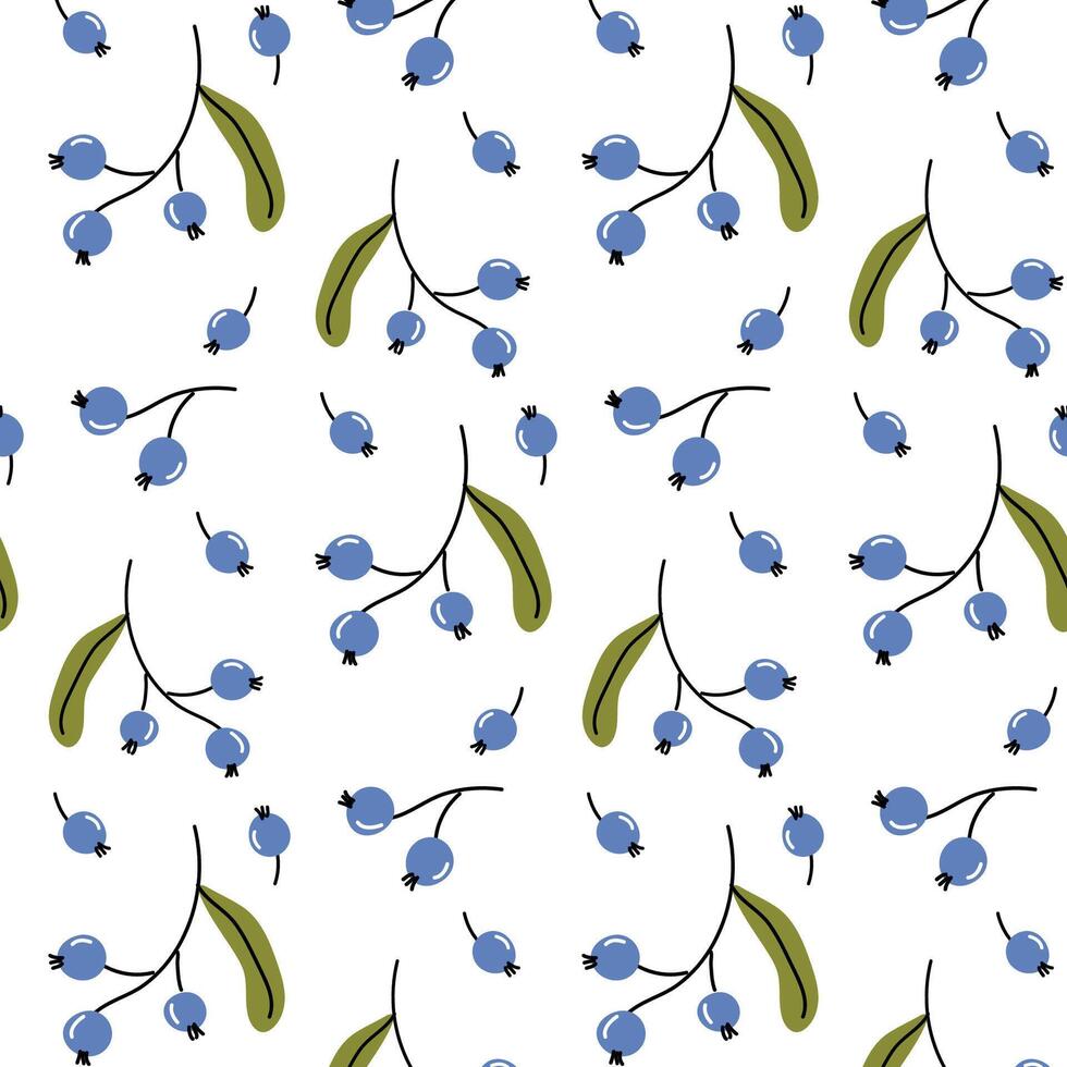 Blue berry pattern design featuring leaves on a white background creating a fresh and natural aesthetic for various applications Pro Vector