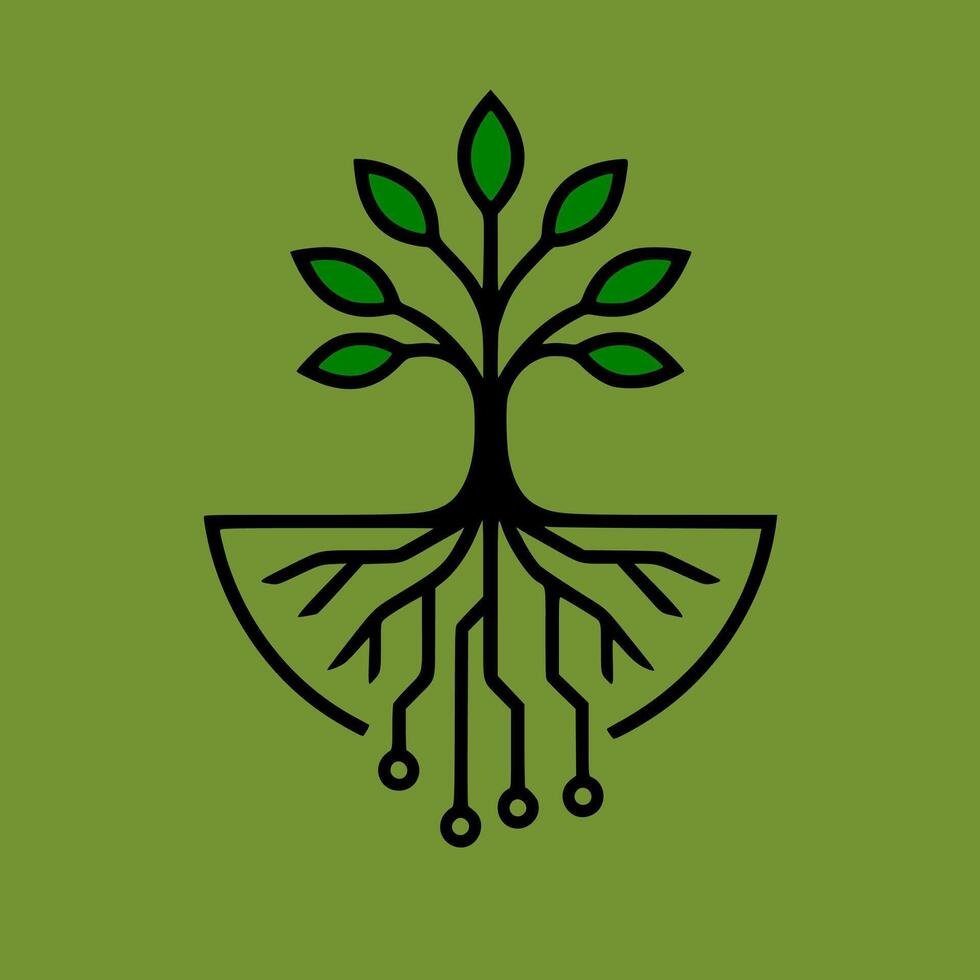 Illustration of a tech tree, representing growth and connectivity in a nature influenced circuit design on green background. Free Vector