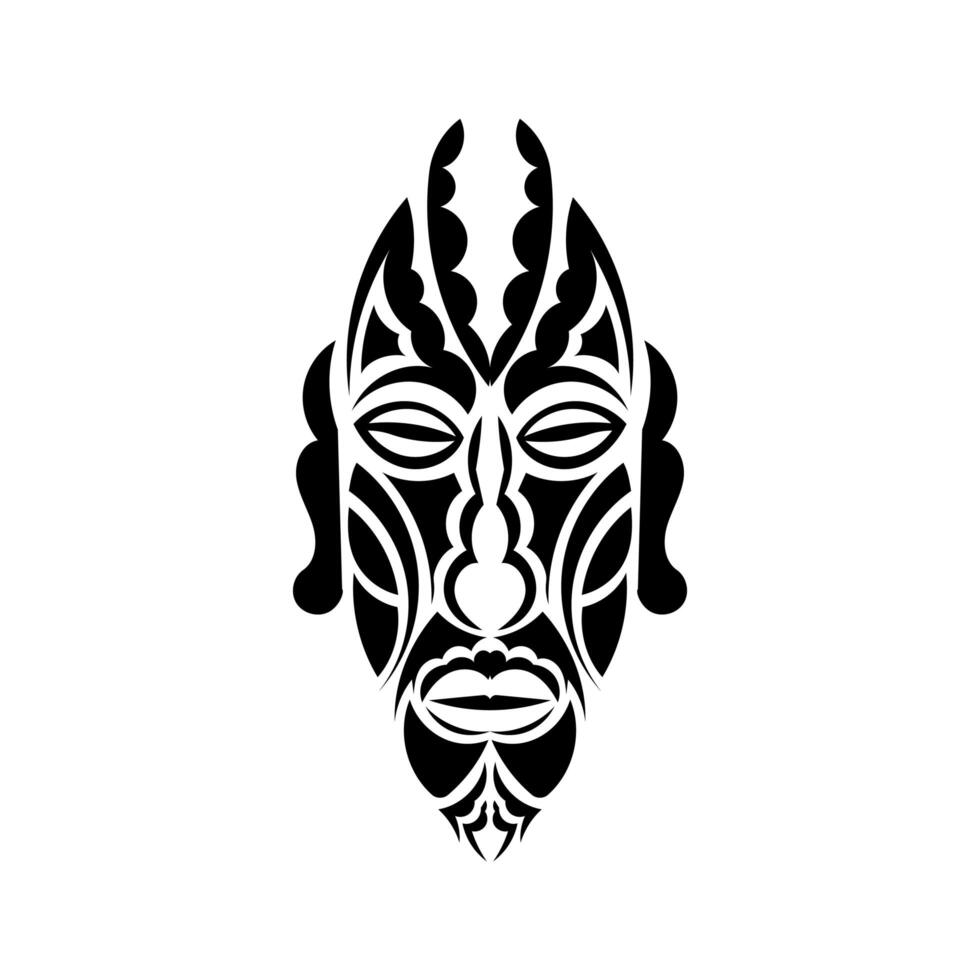 Tiki face, mask or totem. Patterns in the style of Polynesia. Good for tattoos, t-shirts, and prints. Isolated. Vector Pro Vector