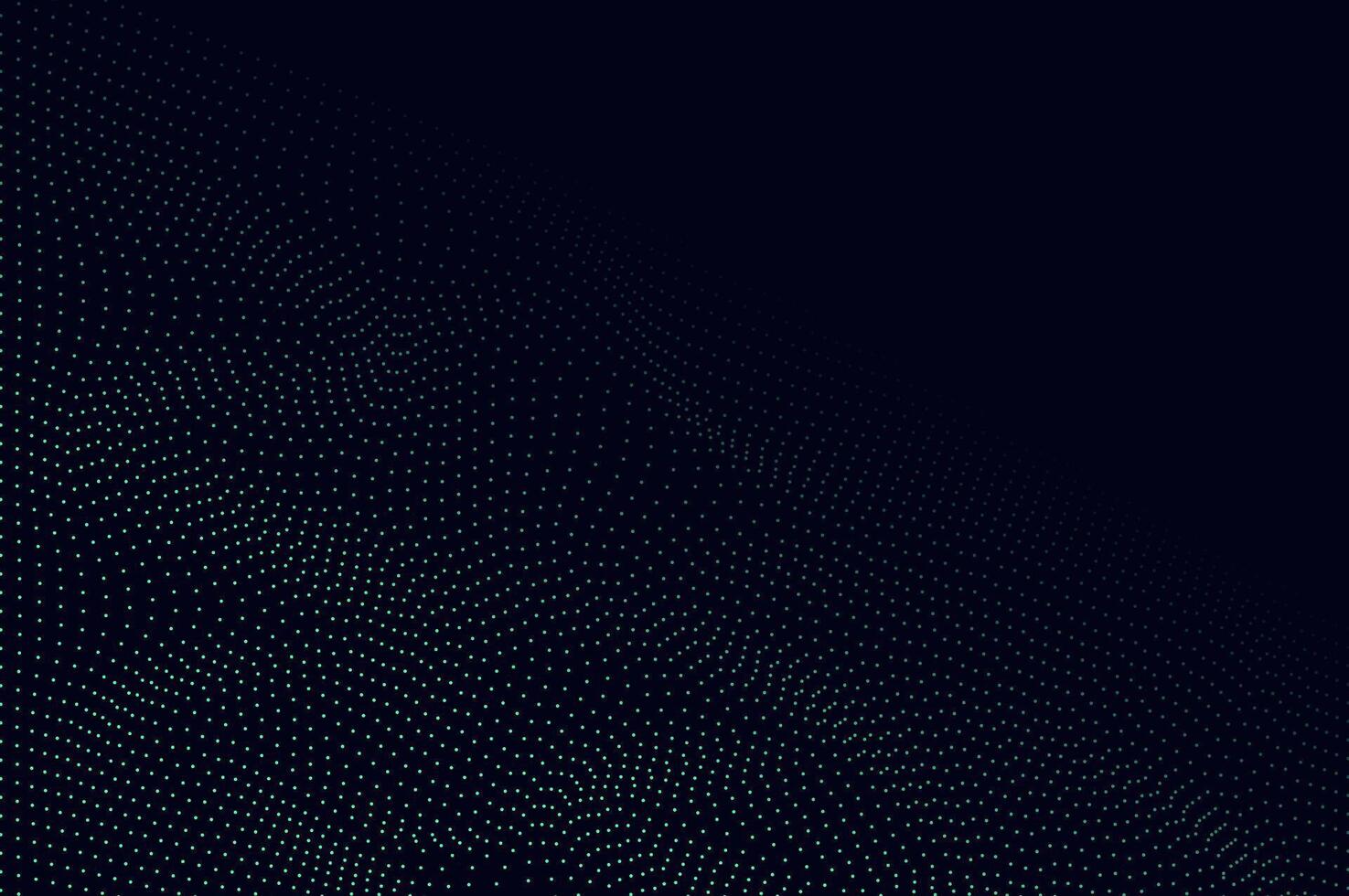 Mininalist Dynamic neon green particle wave line on dark blue abstract background. Abstract sound, data tech visualization with copy space. Pro Vector