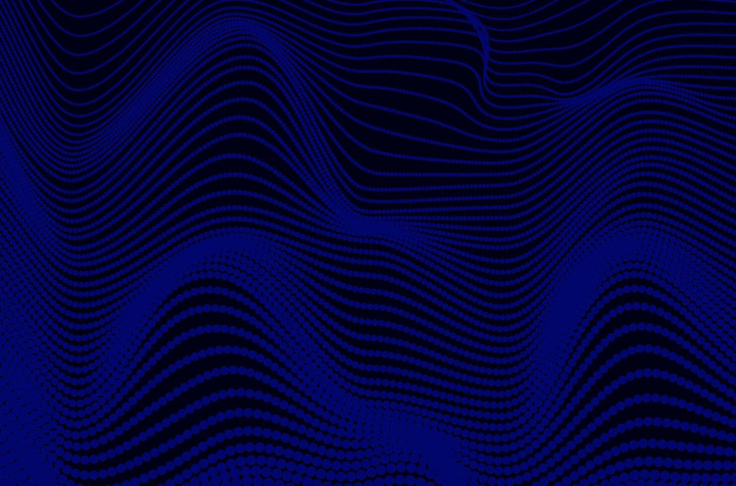 Dynamic big data gradient blue neon particle wave dots technology abstract background. Futuristic design with motion and depth effect. Pro Vector