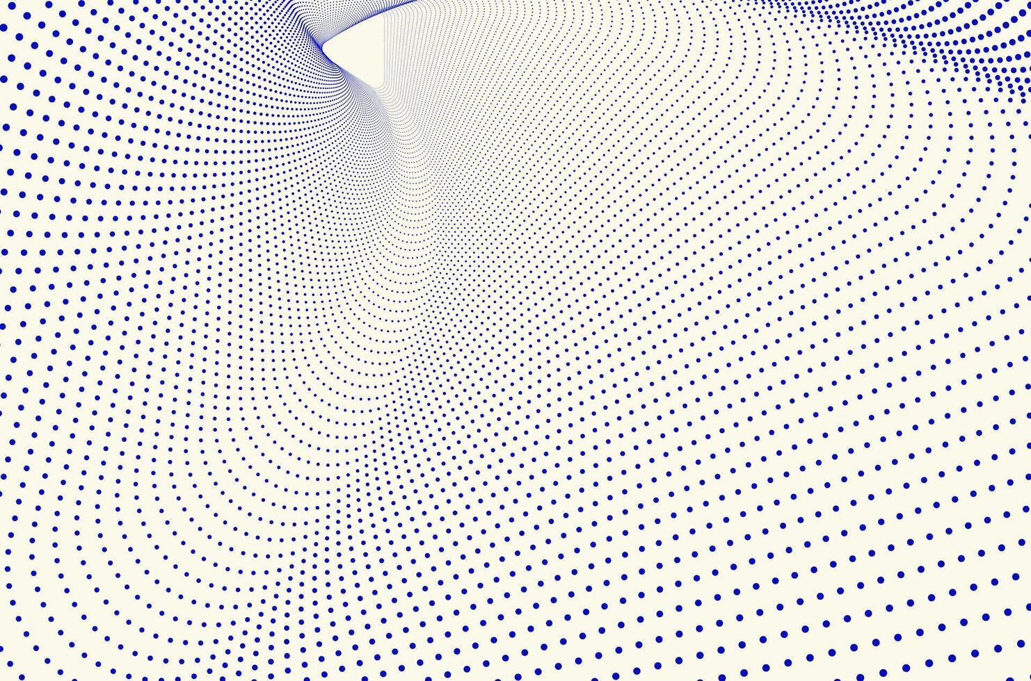 Concentric triangle line dots particles ripple swirl and spin rotate pattern tech abstract background. Tech, science and futuristic background with copy space. Pro Vector