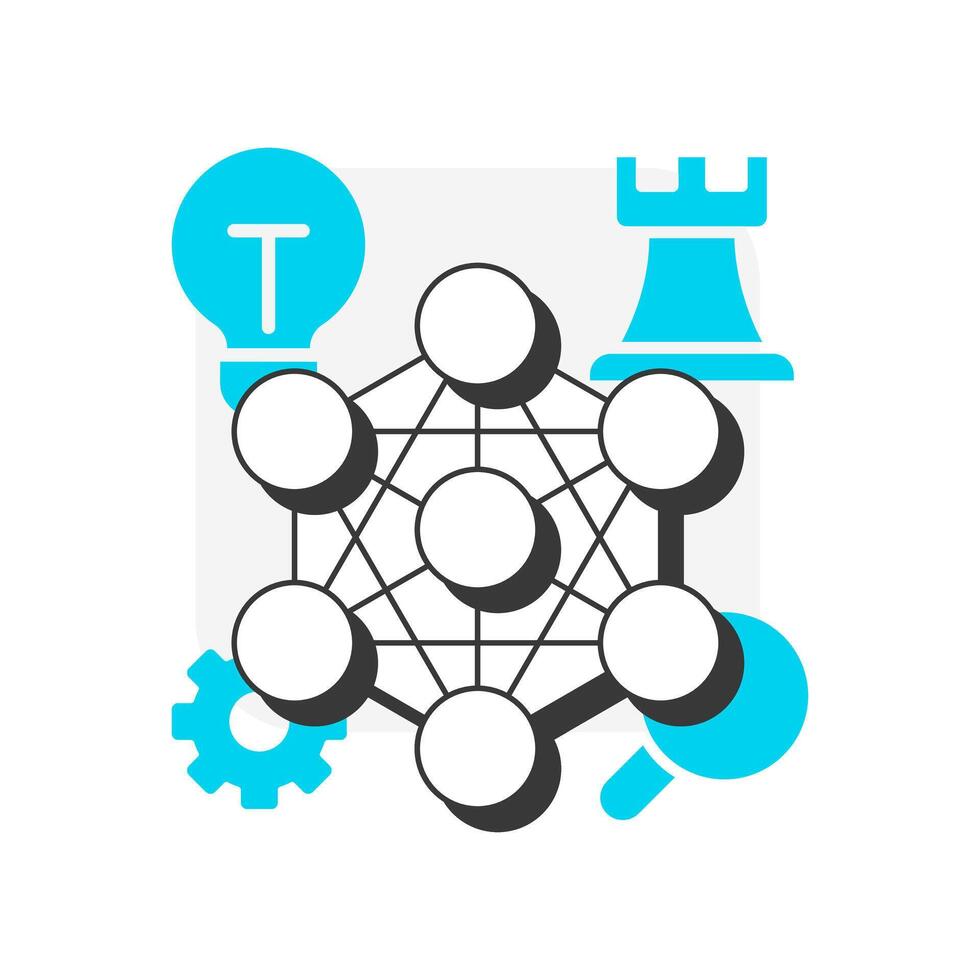 McKinsey 7S flat outline concept icon. Diagnostic framework for evaluating organization. Gap analysis tool. Business. Modern line illustration with blue glyphs. Conceptual visual. Easy to edit Pro Vector
