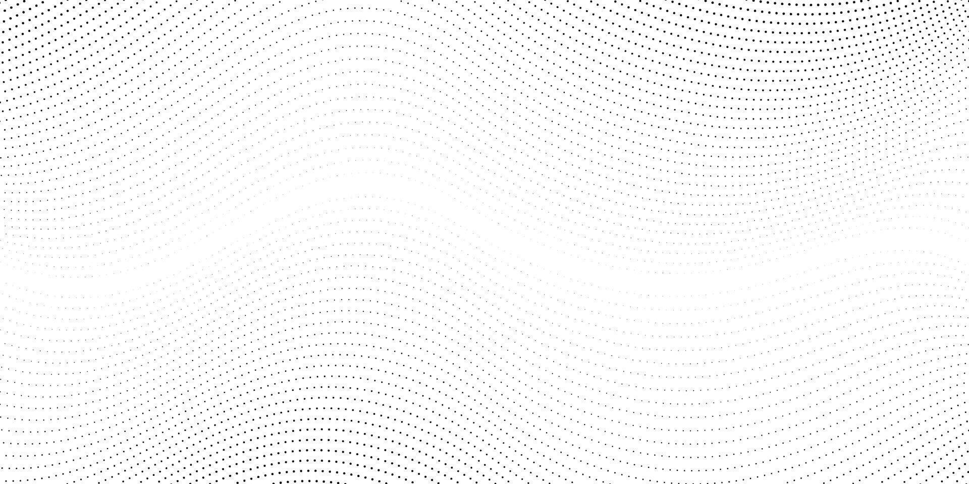 Dotted wave lines background. Abstract Halftone stripes texture. Warped and curved dashed lines wallpaper. Black and white design Pro Vector