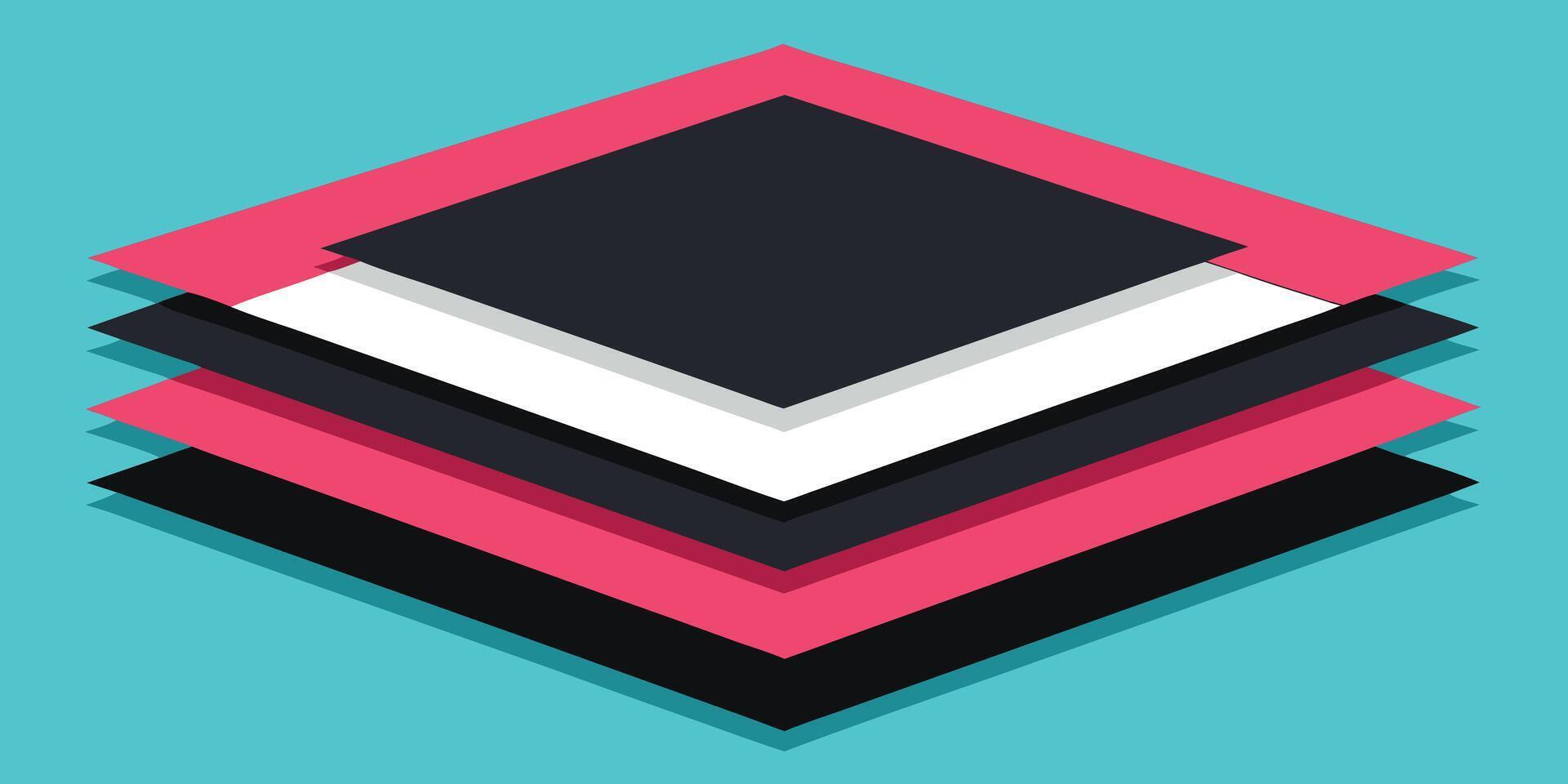 Layered angular shapes in pink teal with shadows on a teal abstract geometric Pro Vector