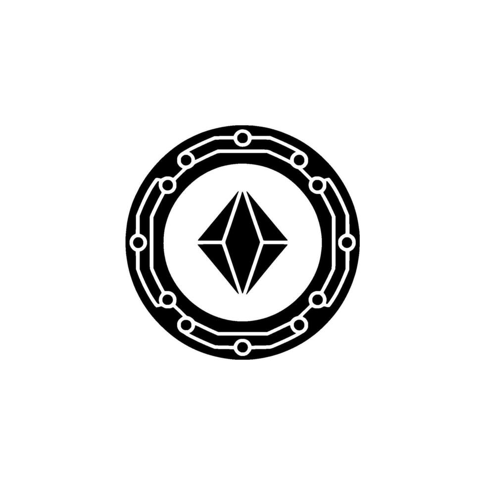 Crypto Diamond In Circuit Minimalist Symbol, Blockchain Pro Vector