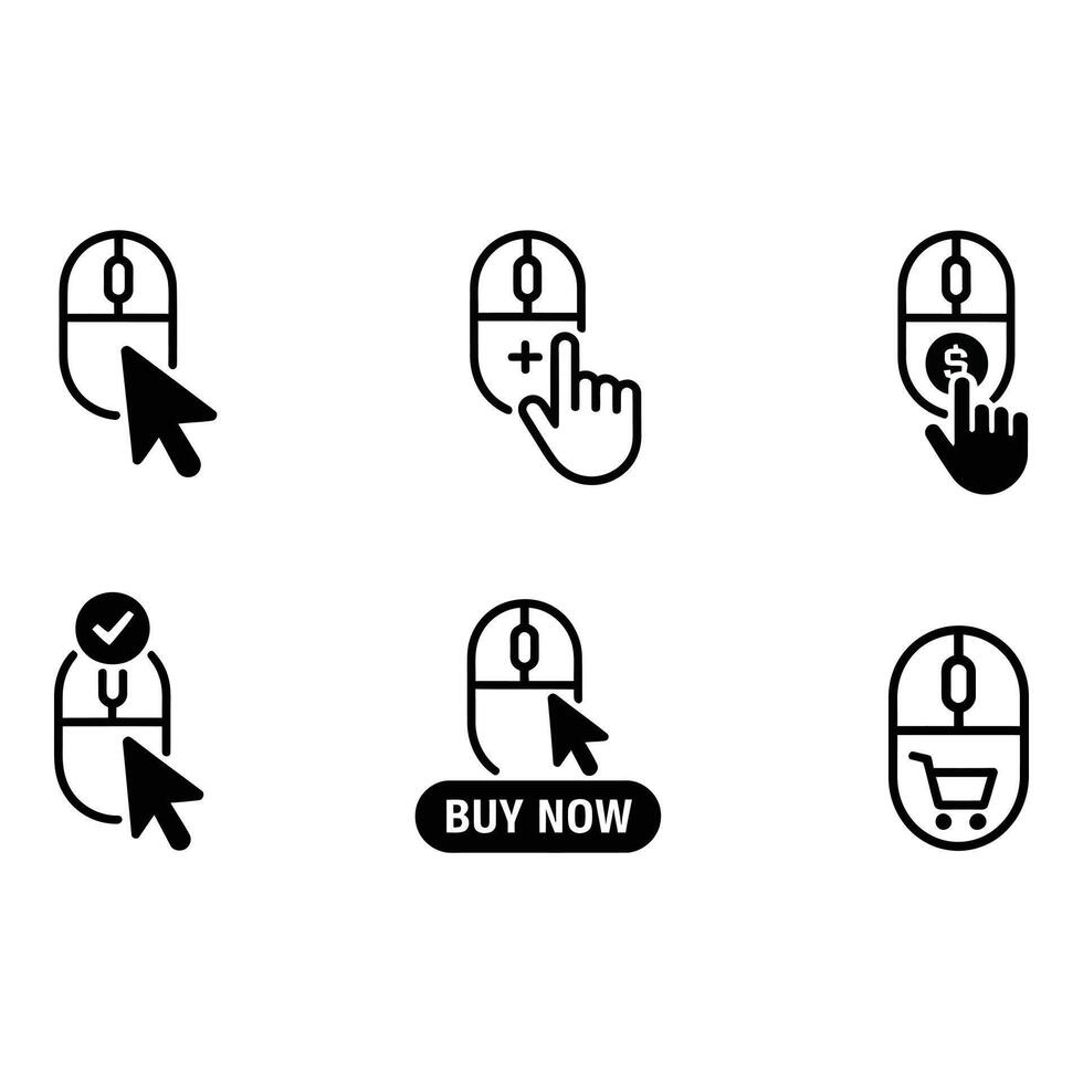 Six Modern Computer Mouse Click Icons E commerce Online Shopping Add to Cart Buy Now Payment Confirmation Pro Vector