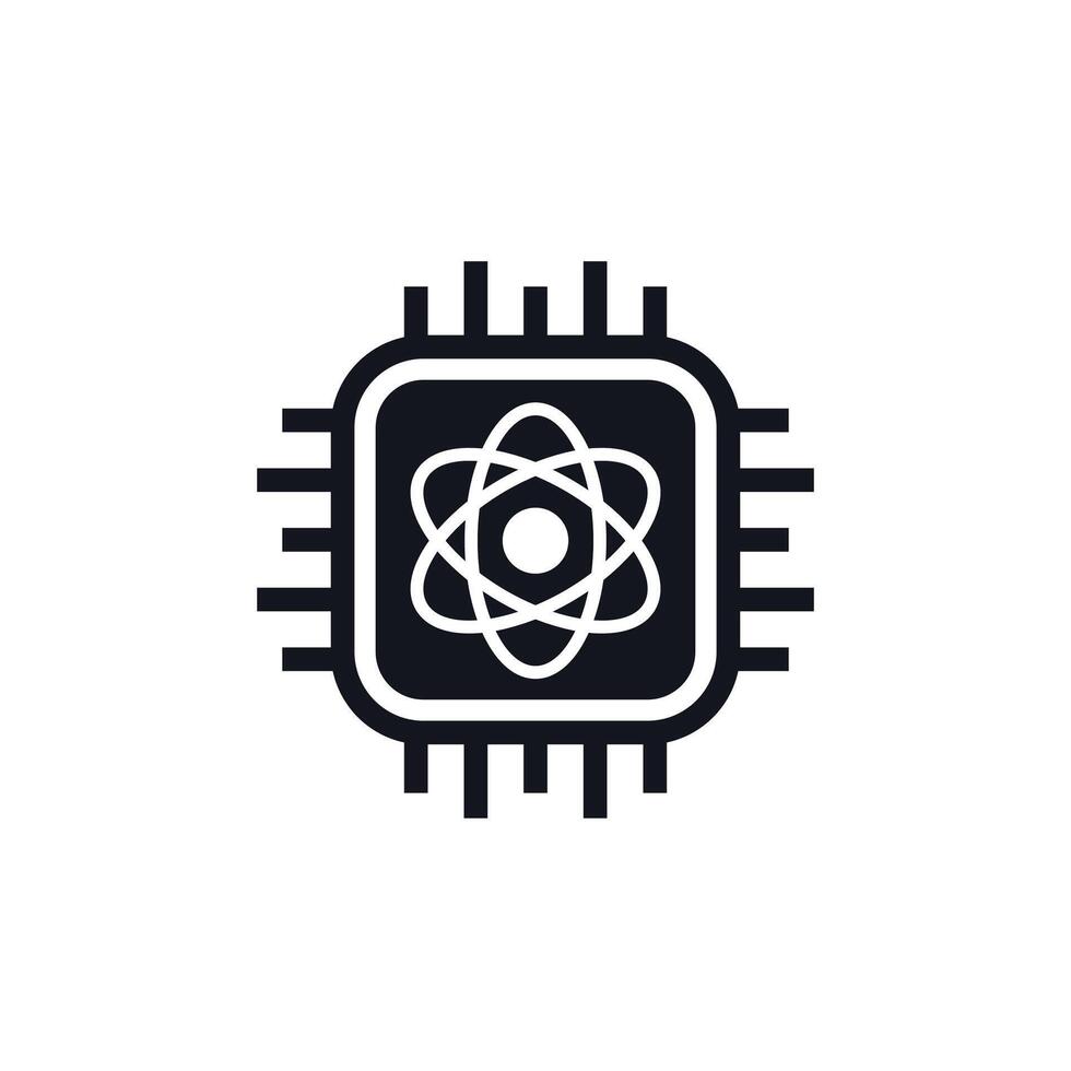 Quantum computer icon with a chip Pro Vector