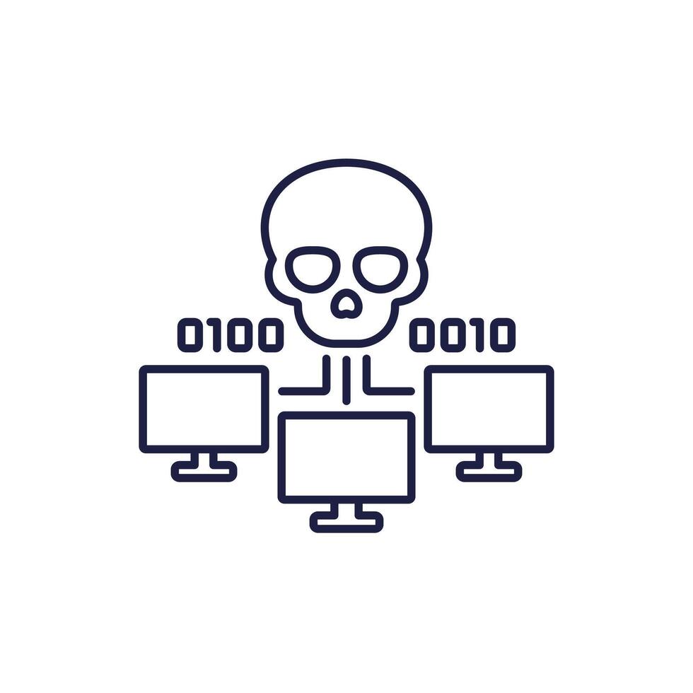 Botnet, bot attack line icon, computer malware or malicious software Pro Vector