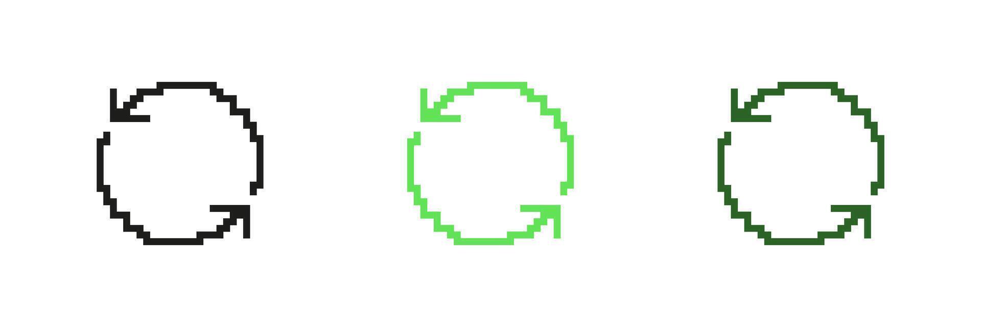 Refresh Arrows Icon Set In Pixel Art. Pixelated Circular Movement and Reload Symbol. Isolated Illustration Pro Vector