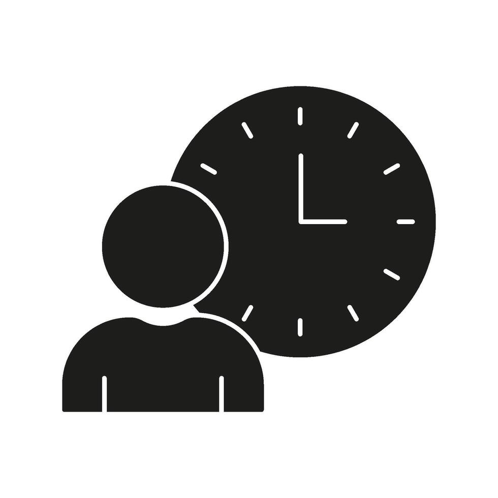 Person With Clock Solid Icon. Time Management, Scheduling, And Productivity Silhouette Symbol. Efficient Planning And Task Organization. Isolated Illustration Pro Vector