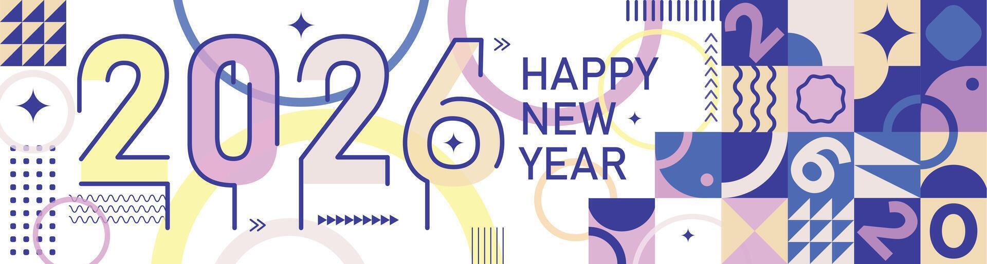 Happy New Year 2026 Modern Calligraphy Design with Abstract Geometric Patterns Pro Vector