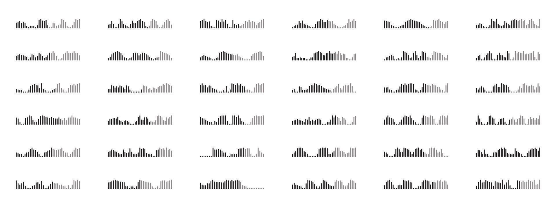 Audio spectrum analyzer elements, Waveform pattern for music player, podcasts, mobile voice message, streaming. Pro Vector